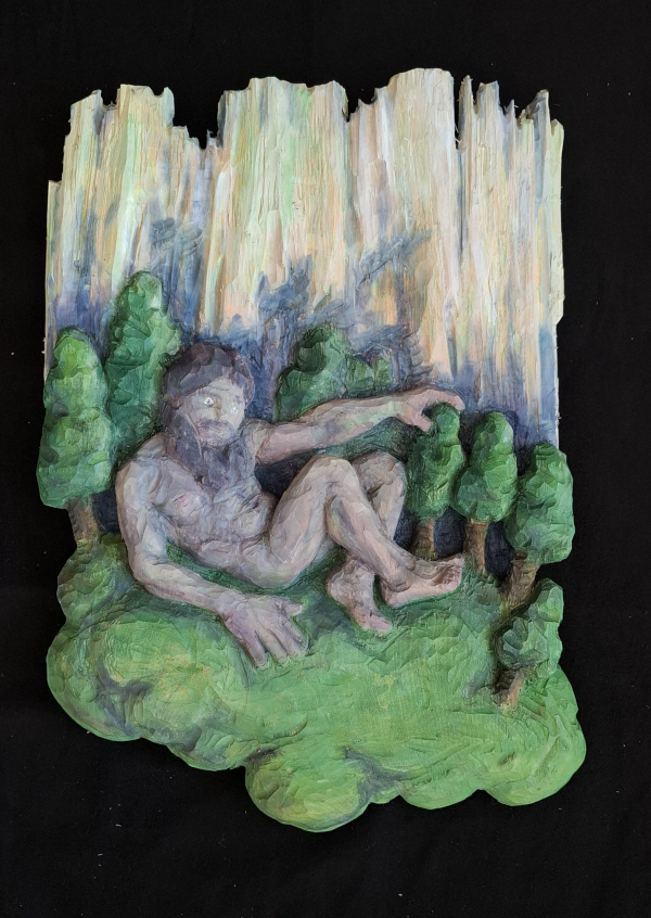 Holzrelief, farbig gefasst / painted. 49 x 36 x 5 cm.